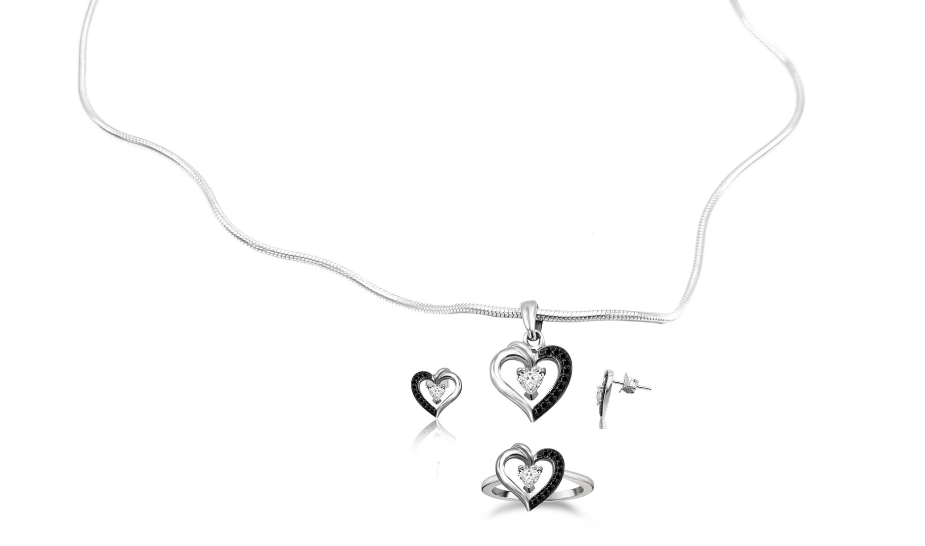 Mit diesem romantischen Set in rhodiniertem Finish und Zirkonia Steinen erobern Sie das Herz Ihrer Angebeteten!